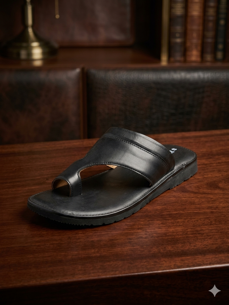 THIS PREMIUM LEATHER SANDAL COMES IN CHOCOLATE AND BLACK COLOURS. IT IS COMFORTABLE, DURABLE, AND PERFECT FOR EVERYDAY WEAR WITH A SIMPLE AND STYLISH DESIGN.